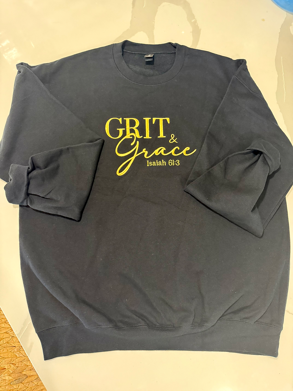 GRIT & GRACE SWEATSHIRT - Black with Gold Lettering (Isaiah 61:3)